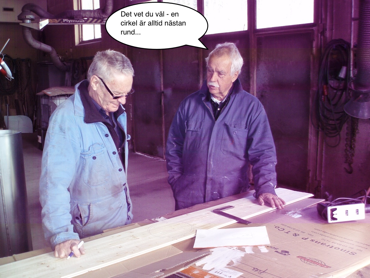 När alla bågarna var tillfälligt på plats (med tvingskruvar) tog vi ett par steg tillbaka och granskade resultatet. Stumma av hänförelse tog vi en välförtjänt fikapaus – tänk att det kunde bli så bra!